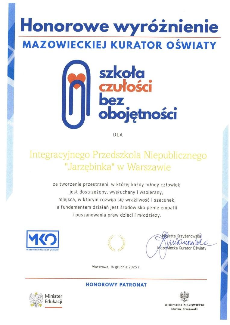Przedszkole i Żłobek Jarzębinka – Warszawa Białołęka Jarzębinka to miejsce, gdzie ciepła atmosfera łączy się z profesjonalną opieką nad dziećmi. W naszym przedszkolu i żłobku każde dziecko jest bezpieczne, ważne i zauważone. Oferujemy bogaty program edukacyjny, zajęcia dodatkowe i wycieczki, które rozwijają ciekawość świata. Dzieci uczą się przez zabawę, eksperymenty i działania kreatywne. Nasz duży, nowoczesny budynek, przestronne sale, piękny ogród i własna kuchnia tworzą idealne warunki do rozwoju. Doświadczona i empatyczna kadra dba o edukację, emocje i bezpieczeństwo dzieci. Jarzębinka to szczęśliwe dzieciństwo i doskonałe przygotowanie do szkoły. 📞 Zadzwoń teraz: tel:+48500600700